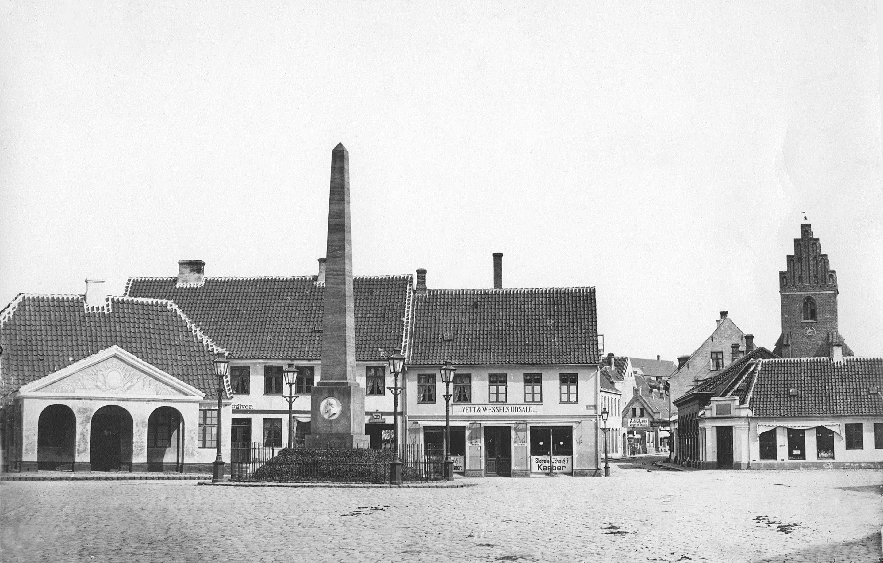 I lighed med mange købstæder havde Næstved også mindesmærker på byens torve. Fra 1870 til 1957 stod Obelisken (nu placeret ved Amtmandsbakken bag rådhuset i Teatergade) midt på Axeltorv, hvor den måtte vige pladsen for et springvand i forbindelse med renovering af torvet, hvor også parkeringskælderen blev anlagt.