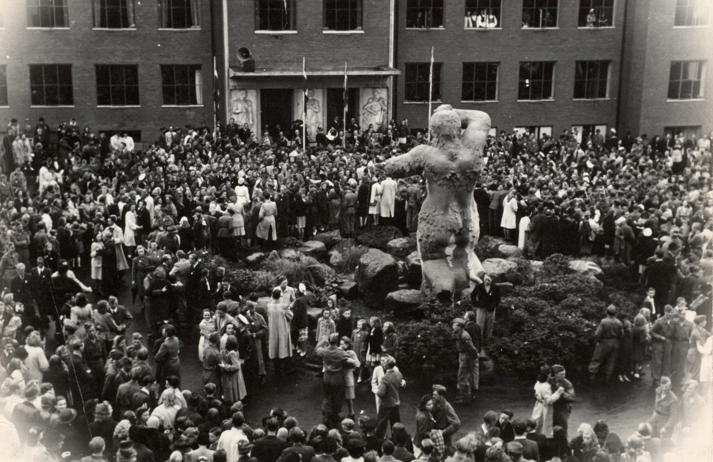 Skal man tro Næstved Tidende, var den 22. december 1944 en bidende kold dag. På trods af det var ca. 200 tilskuere ifølge avisen mødt op for at se Fensmark-kunstneren Arne Bangs værk afsløret. Tilstedeværende var bl.a. Byrådets medlemmer, bestyrelsen for Næstved Turistforening og alle dem, der havde doneret til skulpturens opførelse.
