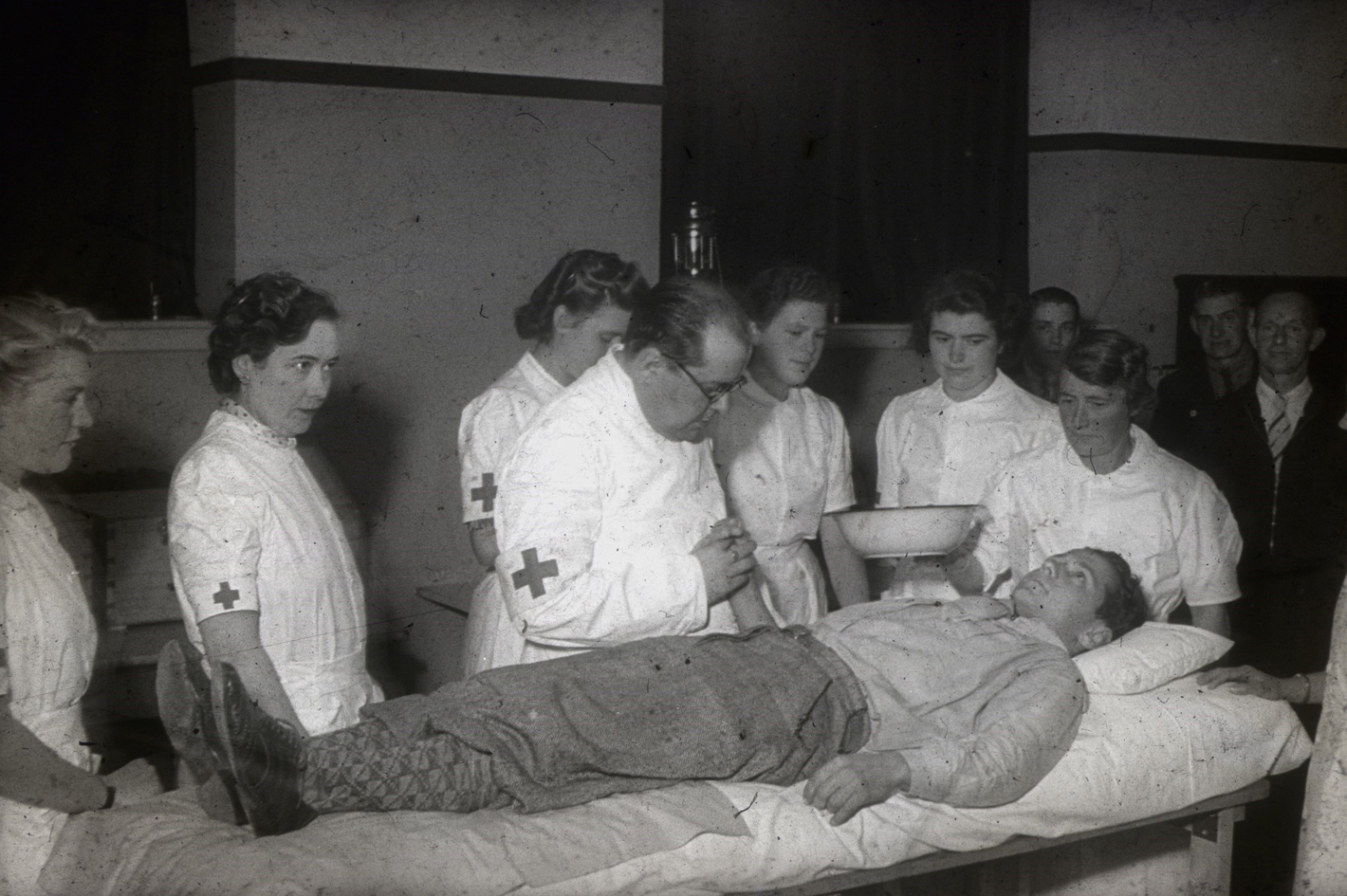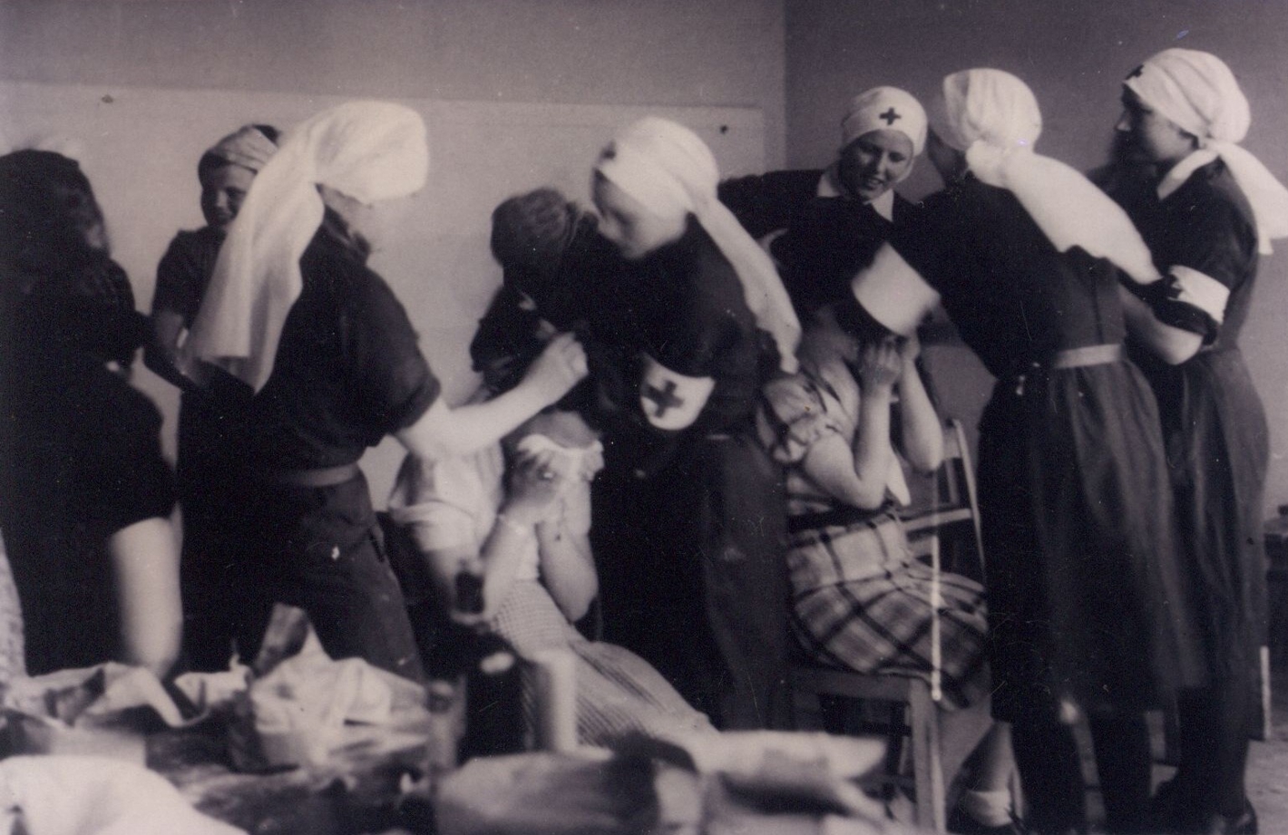 C.B. Sanitetstjenesten på Jernbanegades Skole, ca. 1943, fotograf: Louis Clausen